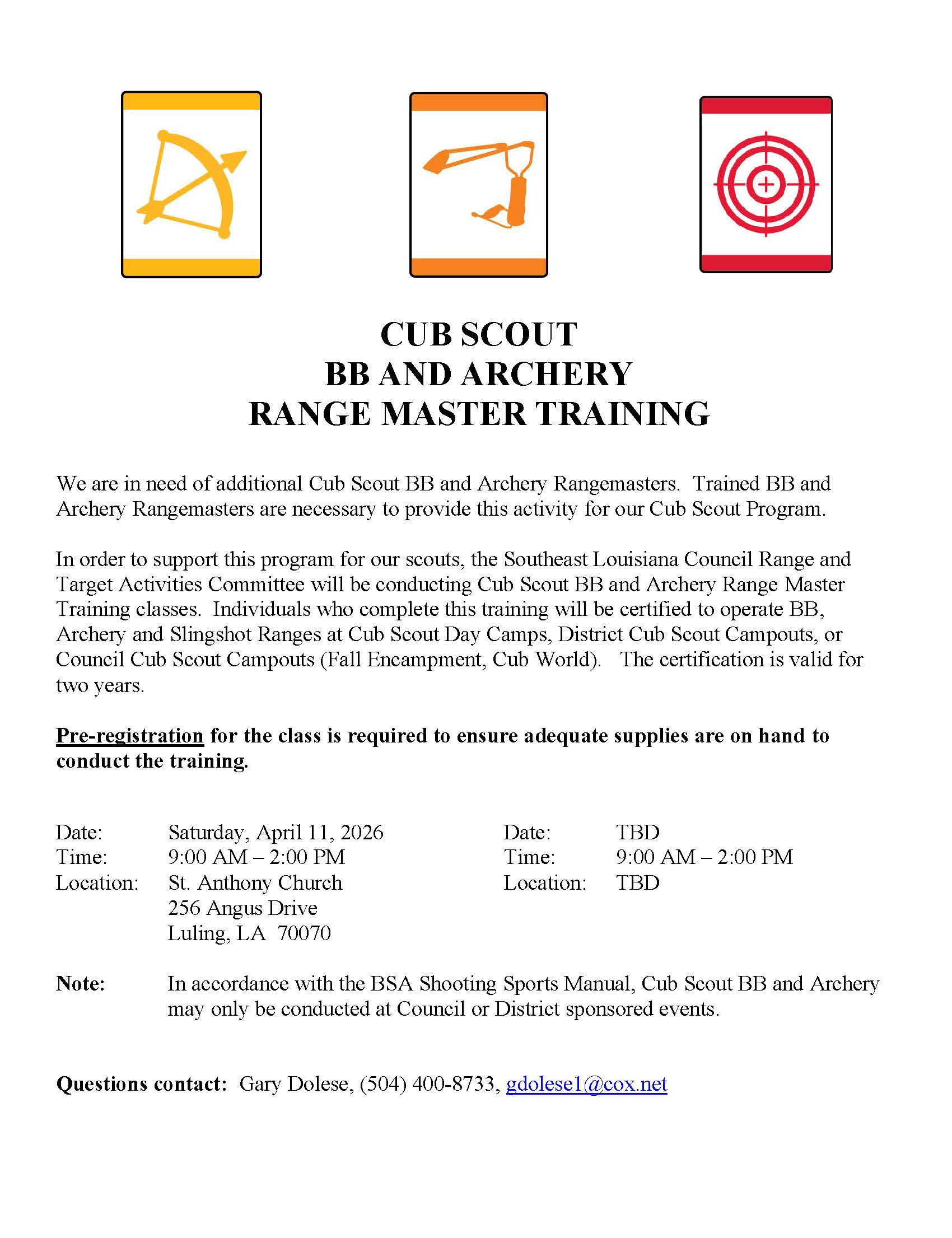 BB and Archery Adult Training Registration