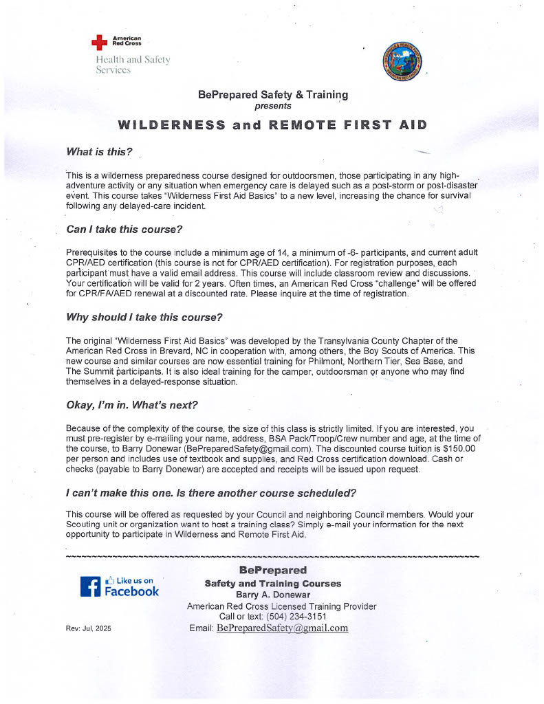 Consideration for a full (minus charges and costs incurred) refund will be considered for special hardship cases and for advanced-level training courses such as Wood Badge.